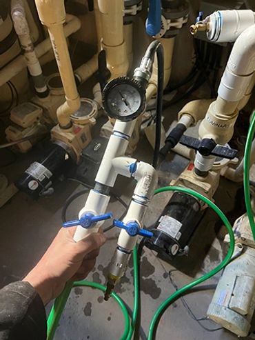 Detecting a pool leak begins with a process called "induction". This process uses high-grade plugs and inducing your pool's system with c02 and water. This can help confirm each line is secure or has the presence of a leak. Once we determine there is a leak, we begin narrowing down the location by isolating the lines and targeting key fail points. When the line causing the issue is determined, we then use "line-locating" equipment to generate a map of your pool's plumbing . Finally, using deck microphones, hydrophone technology, and frequency separating audio amplifiers, this technology will brings us within inches of where the leak is located.